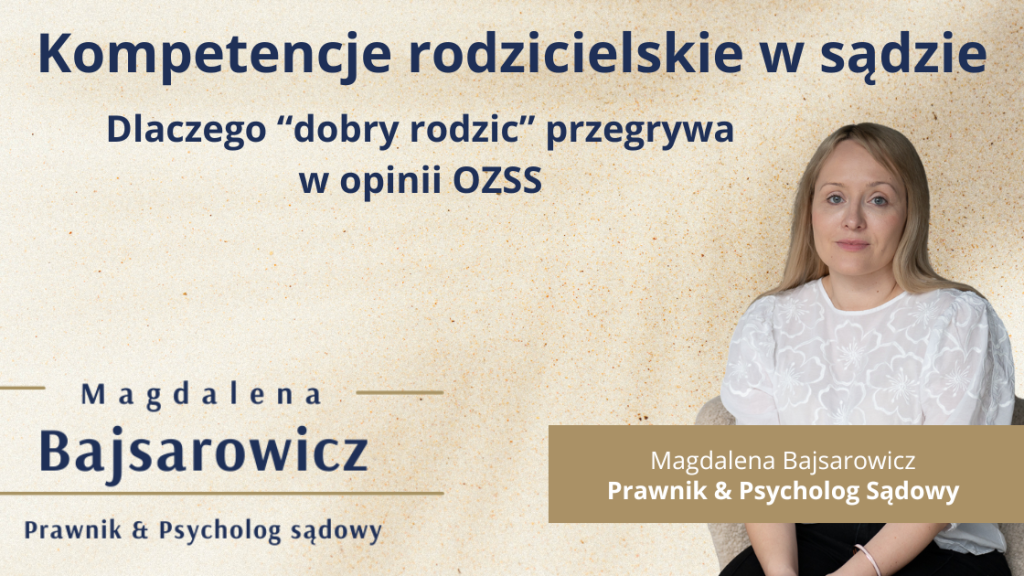 Rodzic, który na co dzień jest ciepły, obecny i zaangażowany, może w opinii OZSS wypaść gorzej niż rodzic mniej zaangażowany, ale potrafiący zachować spokój i wykazać gotowość do współpracy. To nie jest sprawiedliwe w ludzkim sensie , ale tak działa logika systemu. Jeśli chcesz zrozumieć, jak dokładnie przebiega to badanie, zapoznaj się z opisem badania psychologiczno-sądowego kompetencji rodzicielskich.