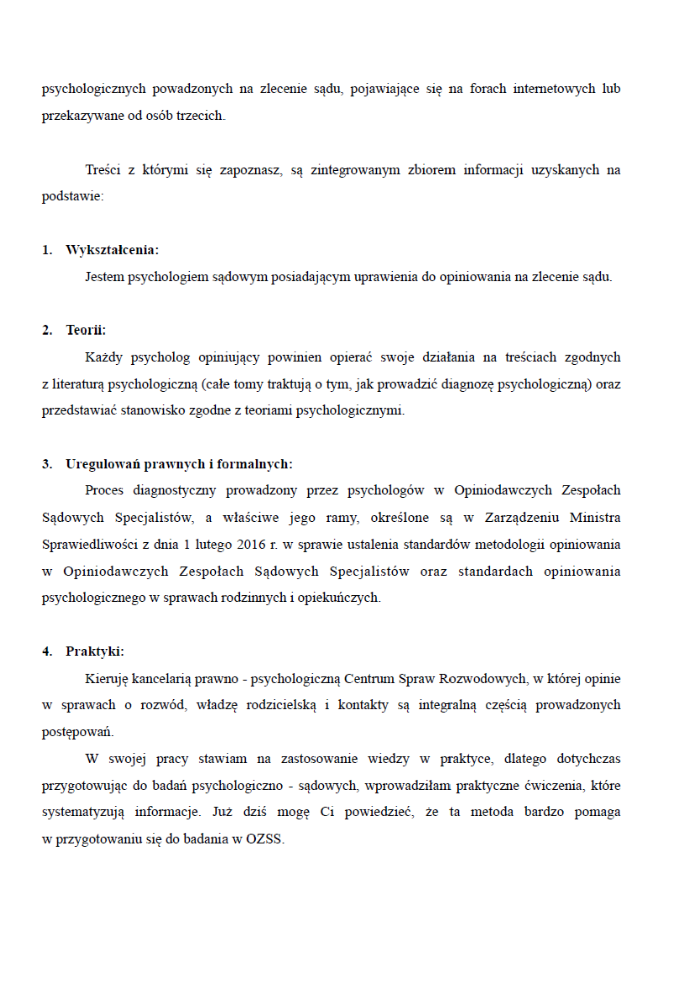 - Kompleksowy e-book – opracowanie teoretyczno-praktyczne, które przygotuje Cię do badania OZSS oraz spotkania z biegłymi psychologami.