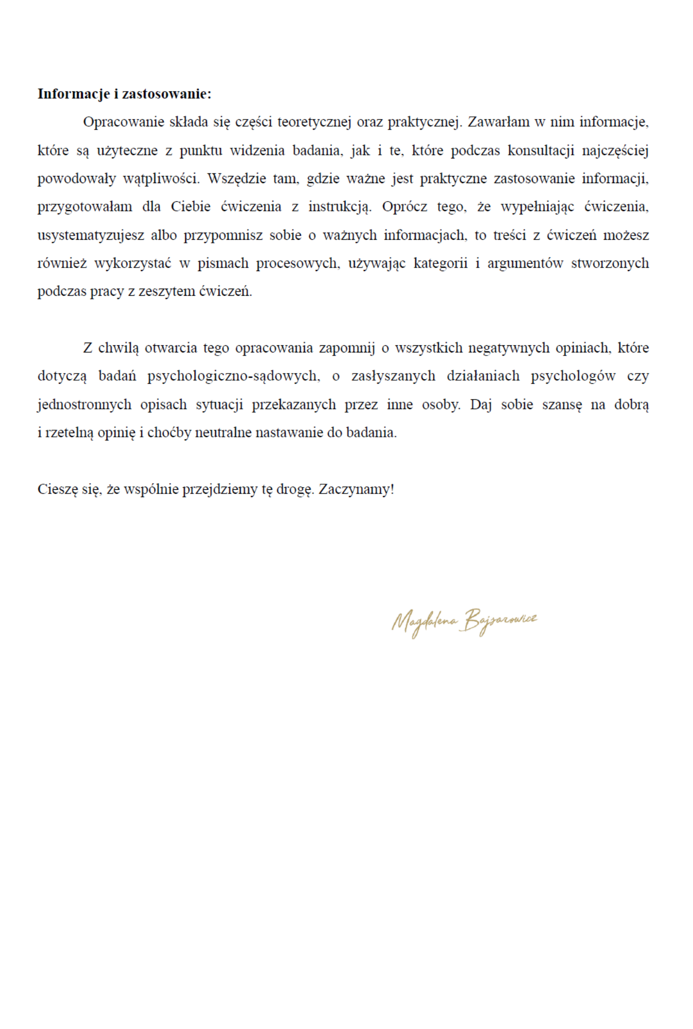 - Dla osób, które potrzebują uporządkować dokumentację, aby sprawnie przygotować się do badania przez biegłych psychologów.