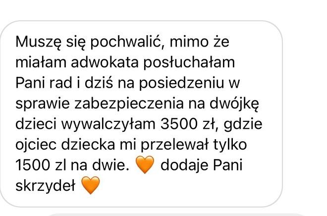 Od 18 lat prowadząca w sądach sprawy o alimenty, podział majątku, o rozwód, o władzę rodzicielską i kontakty. Ma za sobą tysiące zadowolonych klientów. W Internecie na profilu dzieli się wiedzą z zakresu prawa rodzinnego.